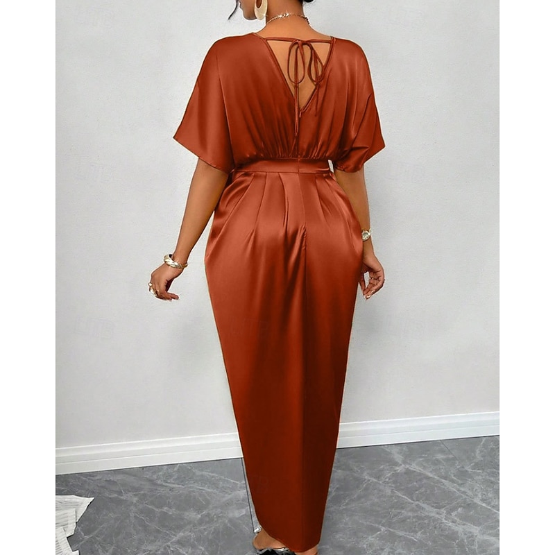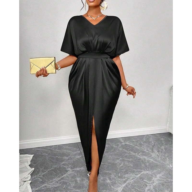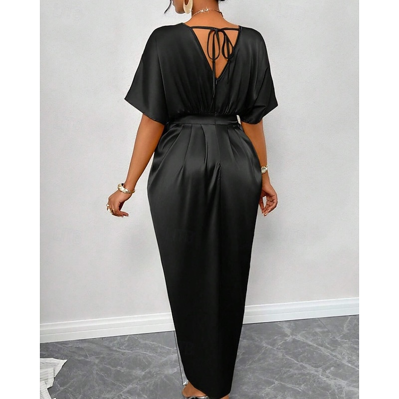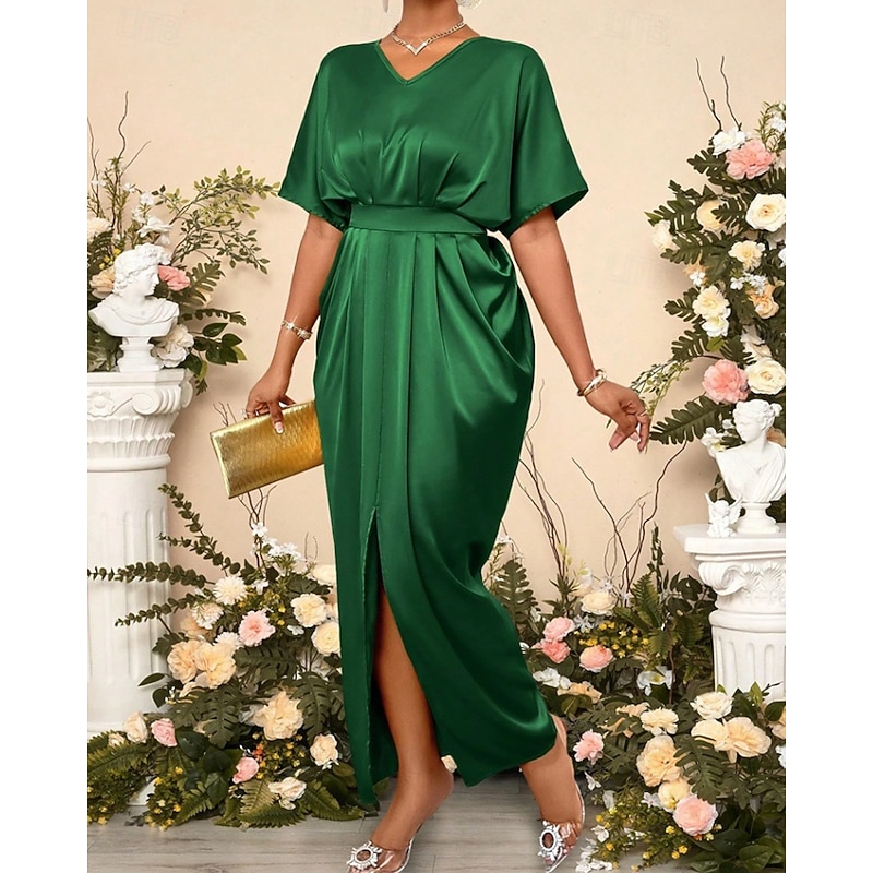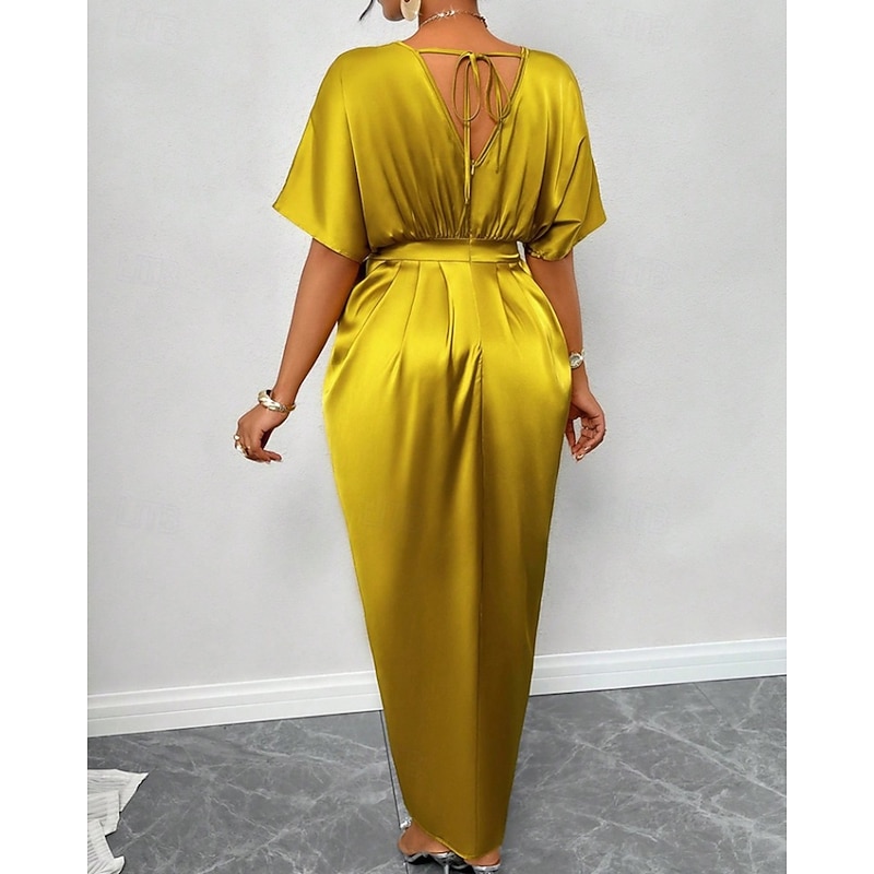 More information about Women's Long Dress Maxi Dress Party Dress Cocktail Dress Satin Dress Elegant Modern Party Evening Party Regular Fit Plain Short Sleeve V Neck Black Yellow Royal Blue Dark Green Fall Winter