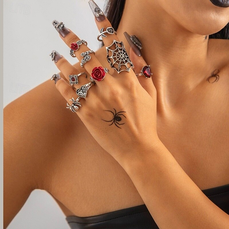 $9.99 - Punk & Gothic Ring Set Jewelry Skull Spider web Fancy Dress Women's Halloween Carnival Halloween Adults Ring All Seasons 2025. Shop for cheap Accessories online? Buy at lightinthebox.com on sale today!