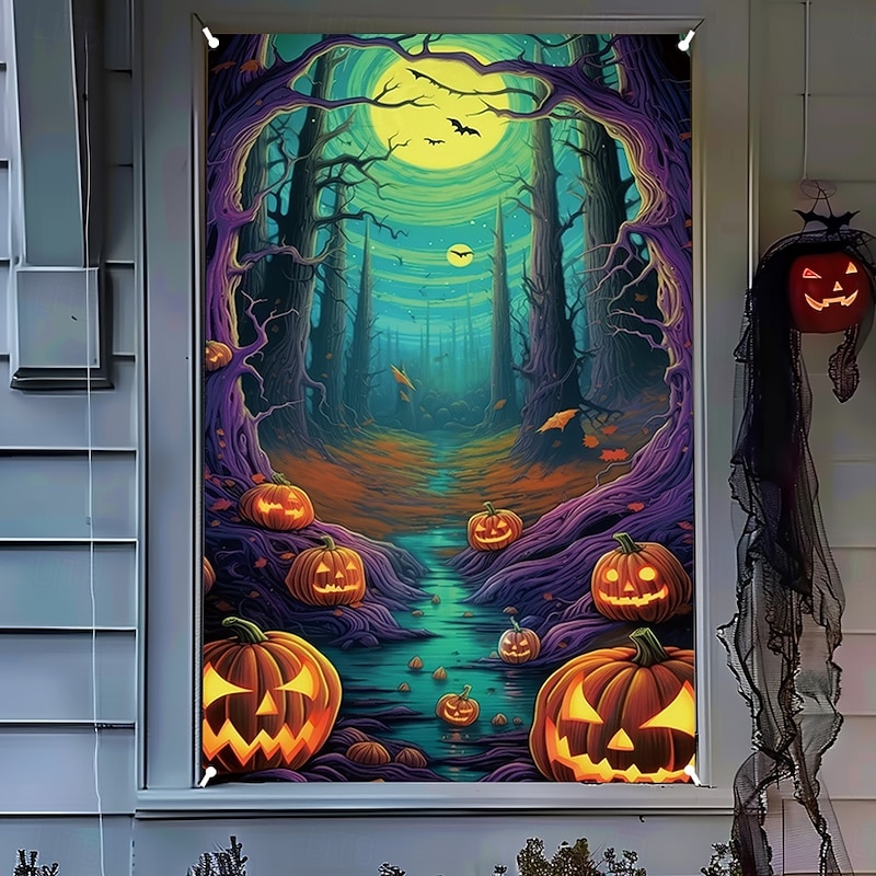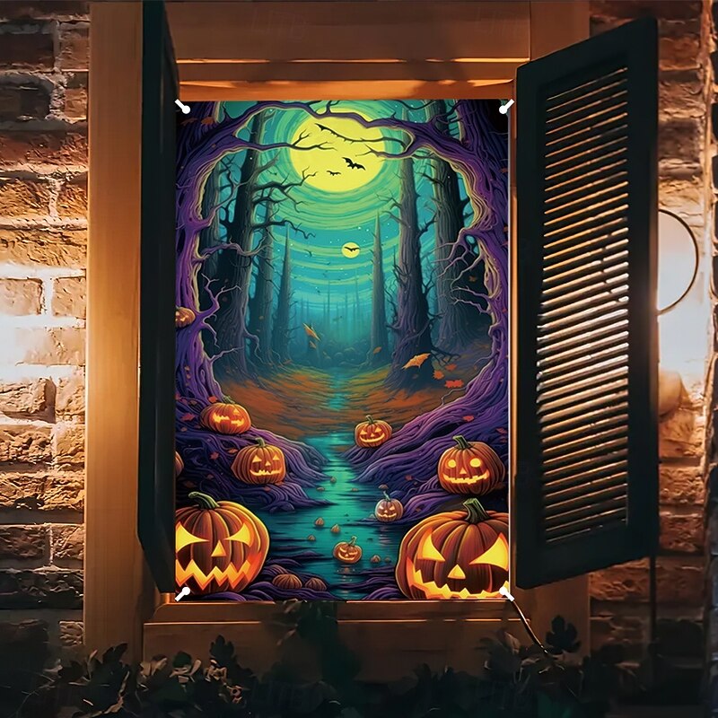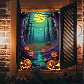 $15.49 - Halloween Window Cover Decorations, Fabric Stained Glass Pumpkin Halloween Curtain Poster Window Door Covering Decor for Haunted House, Scary Halloween Window Clings Decals Indoor Outdoor 2025. Shop for cheap Halloween Wall Tapestries online? Buy at lightinthebox.com on sale today!