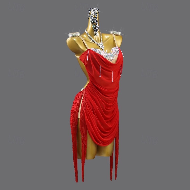 $262.29 - Latin Dance Dress Rhinestone Tassel Women's Performance Salsa Dance Clothes Sleeveless Samba Cha Cha Rumba Stage Dancewear 2025. Shop for cheap Competition Dress online? Buy at lightinthebox.com on sale today!