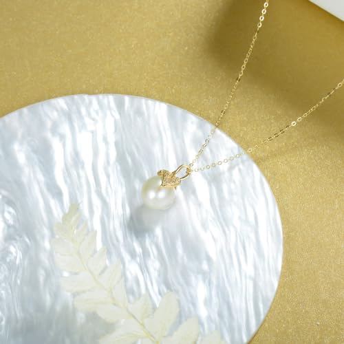 • 【Material】Metal: real 14k gold pendant and 14k gold chain (Not gold-plated, not gold filled); Stone: Cultured freshwater pearl, Created moissanite. This women gold jewelry necklace is high-quality and nickel-free.