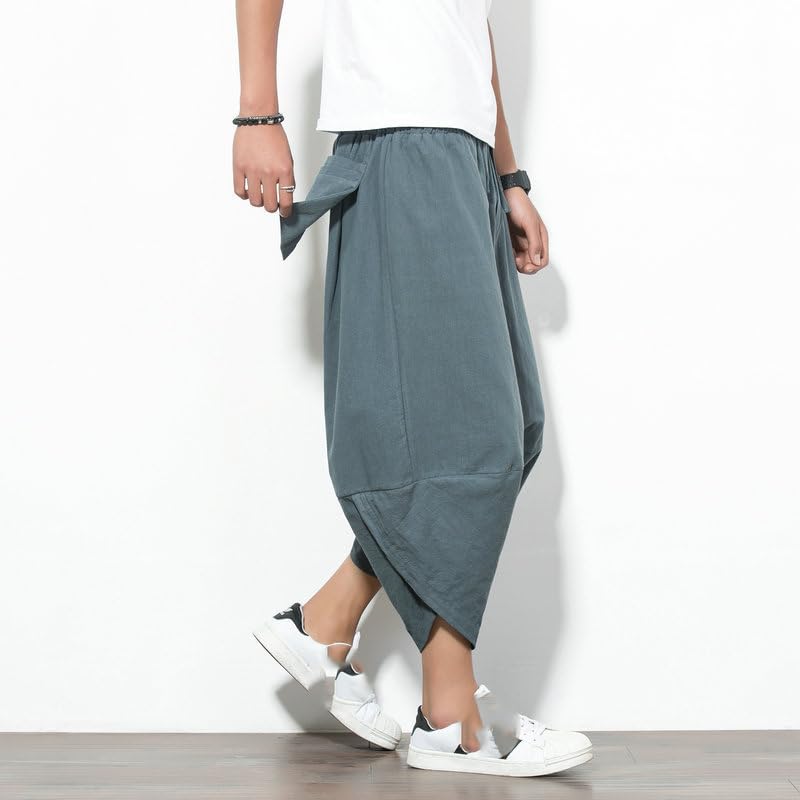GUOYUXIAO Men's Pants Summer Linen Capri Casual Wide-Leg Large Size Trouser for Male 1
