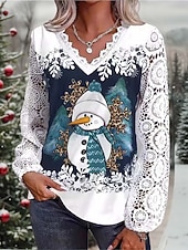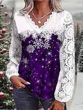 More information about Christmas Women's Shirt Santa Claus Christmas Tree Snowflake Elegant Vintage Cute Long Sleeve V Neck Regular Tops Party Evening Wear Daily Holiday Contrast Lace Patchwork Buttons Red Purple Green