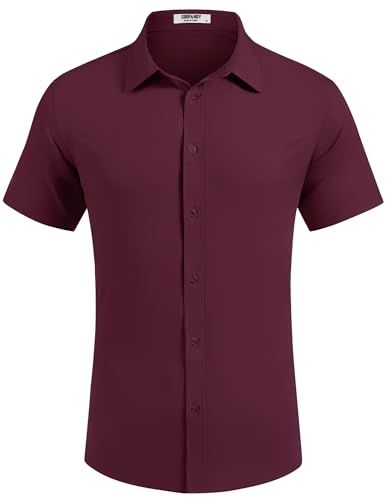 HOT ! COOFANDY Mens Dress Shirts Button Down Short Sleeve Shirt Summer Shirts Business Casual Wedding Shirt
