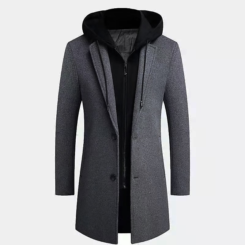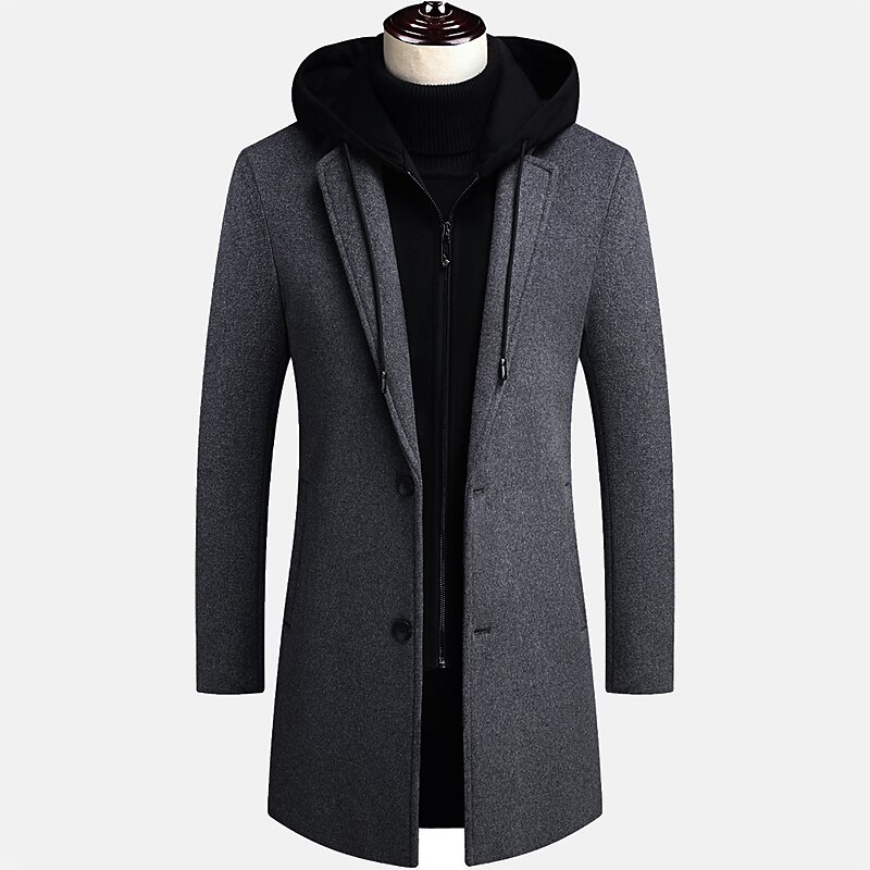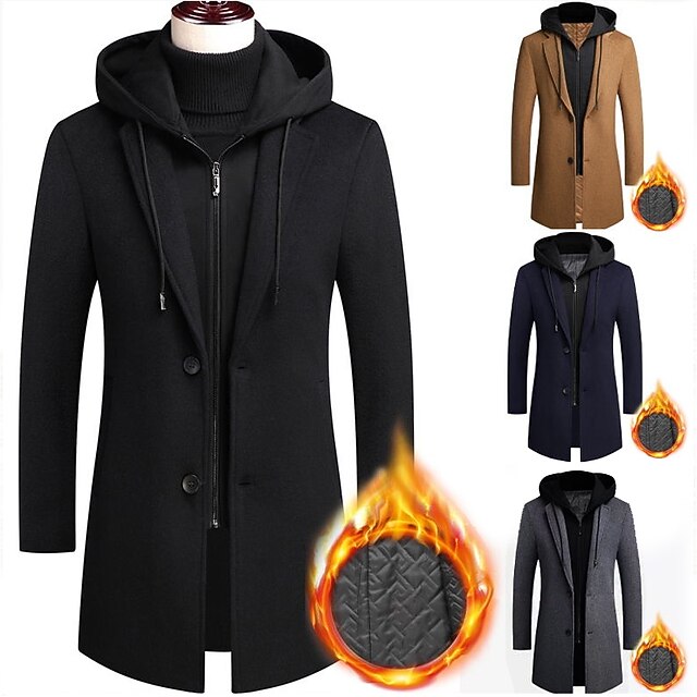 More information about Men's Winter Coat Wool Coat Overcoat Trench Coat Outdoor Street Spring Fall Winter Polyester Thermal Warm Warm Outerwear Clothing Apparel Business Casual Plain Pocket Notch lapel collar Single