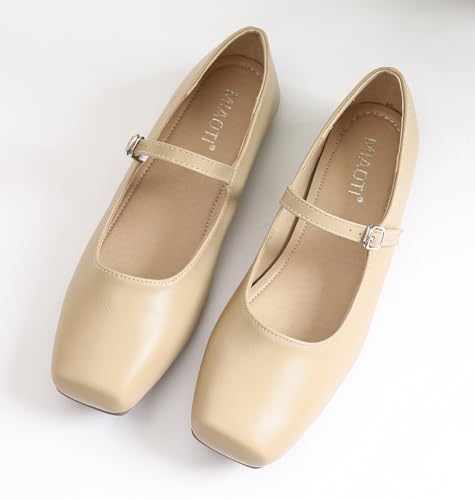 Women's Mary Jane Shoes Ballet Flats for Women Comfortable Square Toe Ankle Strap Flats Soft Work Flats Retro Mary Jane Flats 7