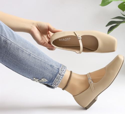 More information about Women's Mary Jane Shoes Ballet Flats for Women Comfortable Square Toe Ankle Strap Flats Soft Work Flats Retro Mary Jane Flats