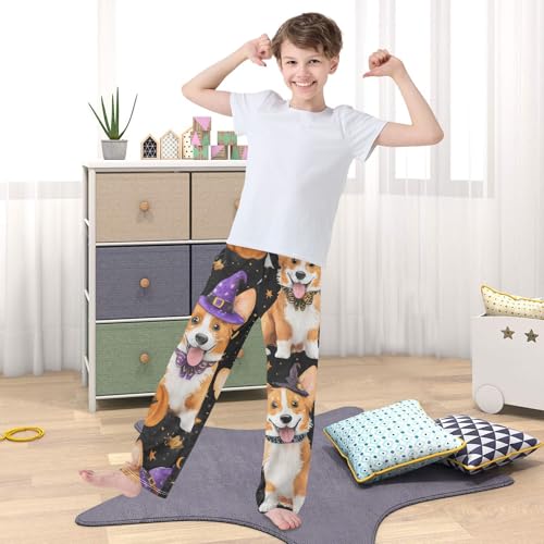 Corgi Dog Halloween Pumkin Boys Long Pants Soft Trousers Elastic Waist Kids Lounge Bottoms with Pockets S-XL 6
