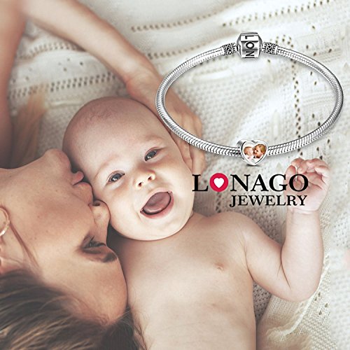 More information about LONAGO 925 Sterling Silver Personalized Photo Charm Fit Compatible for Bracelet Necklace Customized Heart Round Shape Picture Bead
