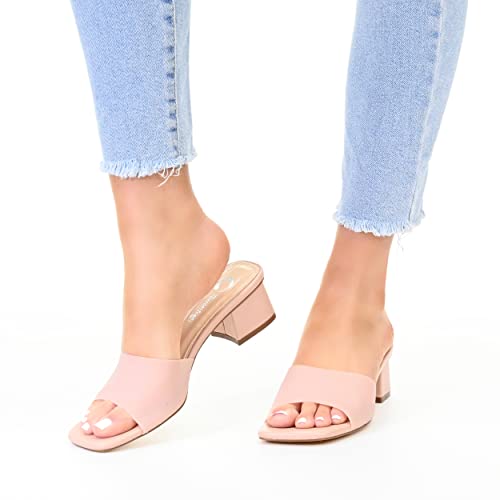 • Heel Height:1 1/2-inch Heel Type: Block Heel Platform Height:Flat-inch Shoe Width: Medium Closure Type: Slip-on Strap Type: Single Band Toe Style: Open Lining: Man-made Upper Material: Man-made Outersole Material: Man-made Footbed: 4 MM Tru Comfort Foam All measurements are approximate and were taken using a size 6. Please note measurements may vary slightly by size.