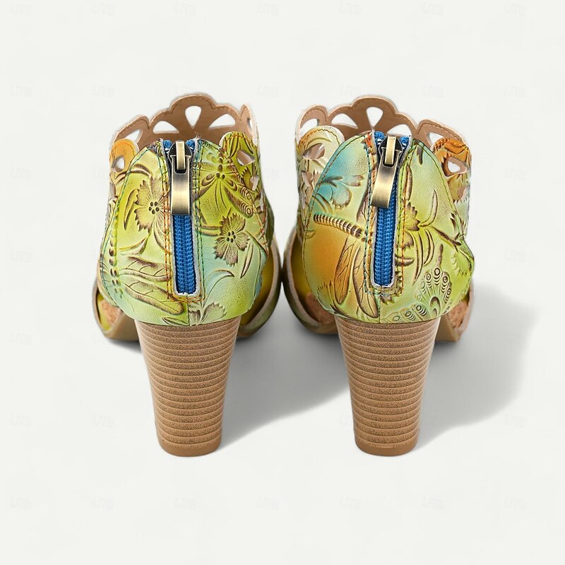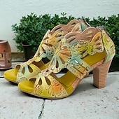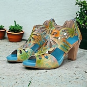 More information about Women's Sandals Floral Cut-out Platform Cone Heel Chunky Heel Peep Toe Elegant Vintage Cowhide Zipper Yellow Blue Light Purple