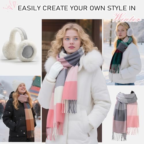 Scarf for Women - Scarves for Women Winter Warm Knit Large Plaid, Cashmere Womens Scarf 6