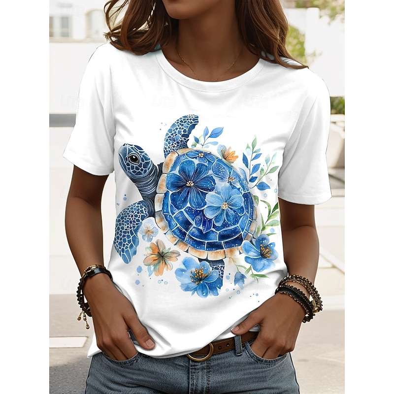 More information about Women's T Shirt Graphic Animal Sea Turtle Vintage Stylish Classic Short Sleeve Crew Neck Round Neck Regular Tops Daily Weekend Print White Royal Blue Blue Green off-white Summer Spring
