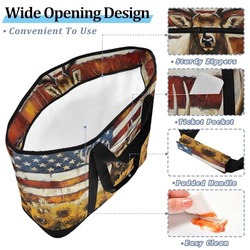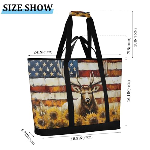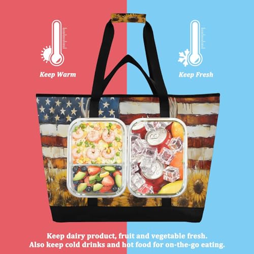 HOT ! Moose Art America Sunflower Large Insulated Tote Bag for Grocery Shopping Reusable Tote Bags for Women Men, Cooler Bag with Zippered Top & Handles for Beach Picnic Travel