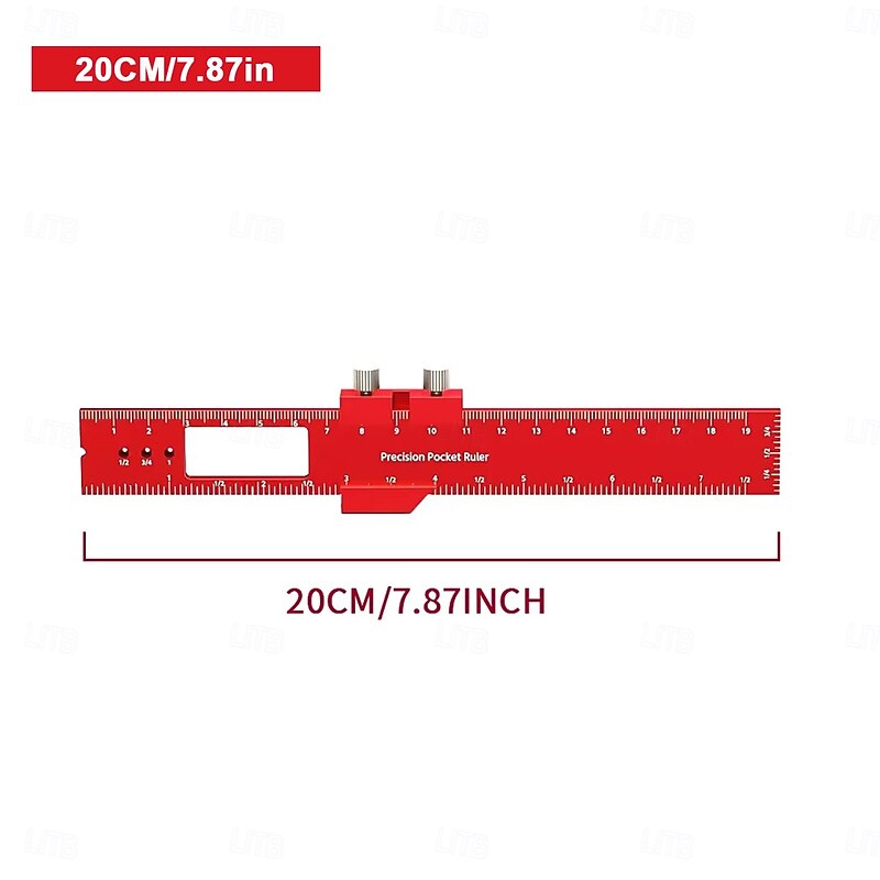 Precision Pocket Ruler T-Type Scribing Ruler Carpenty Square T Track Ruler Inch and Metric Measuring Marking Ruler With Slide Stop 8