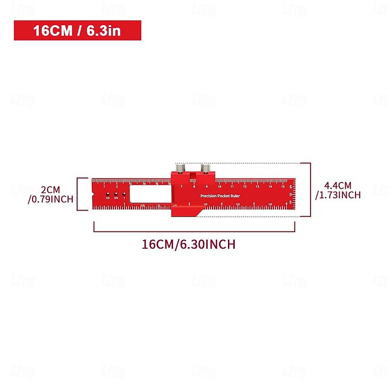 Precision Pocket Ruler T-Type Scribing Ruler Carpenty Square T Track Ruler Inch and Metric Measuring Marking Ruler With Slide Stop 4