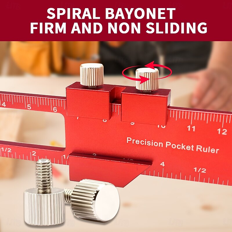 HOT ! Precision Pocket Ruler T-Type Scribing Ruler Carpenty Square T Track Ruler Inch and Metric Measuring Marking Ruler With Slide Stop