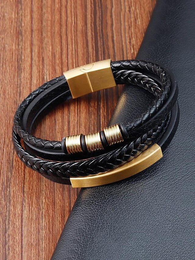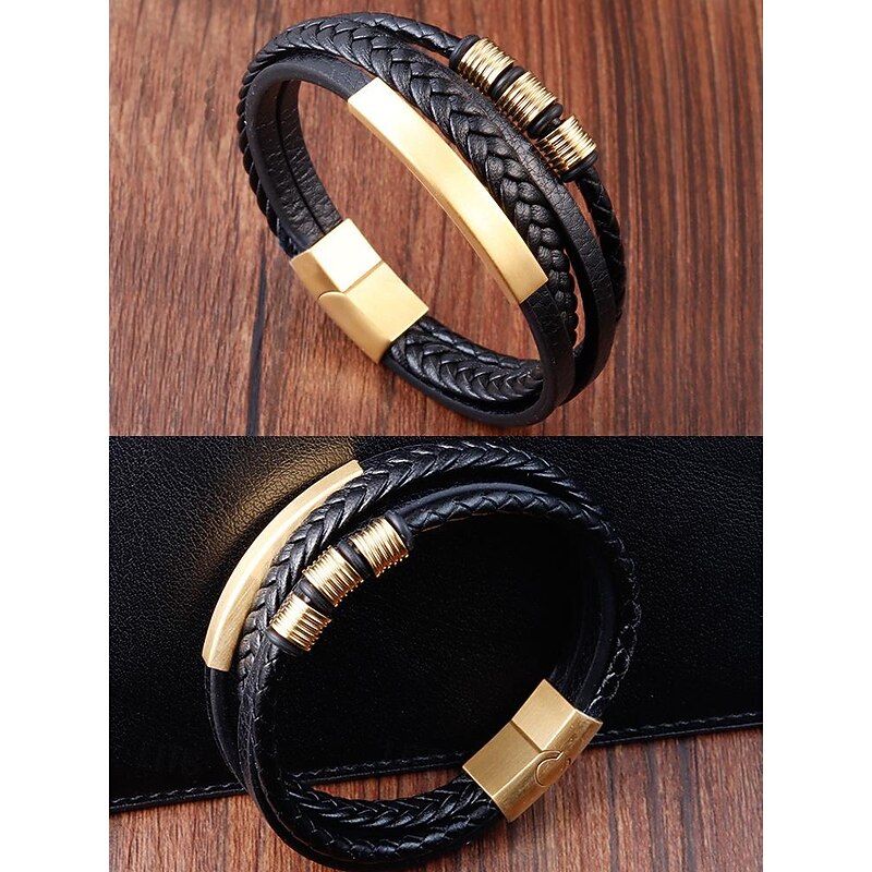 $18.99 - Men's Braided Leather Bracelet with Gold Accents – Modern and Stylish Design 2025. Shop for cheap Men's Jewelry online? Buy at lightinthebox.com on sale today!