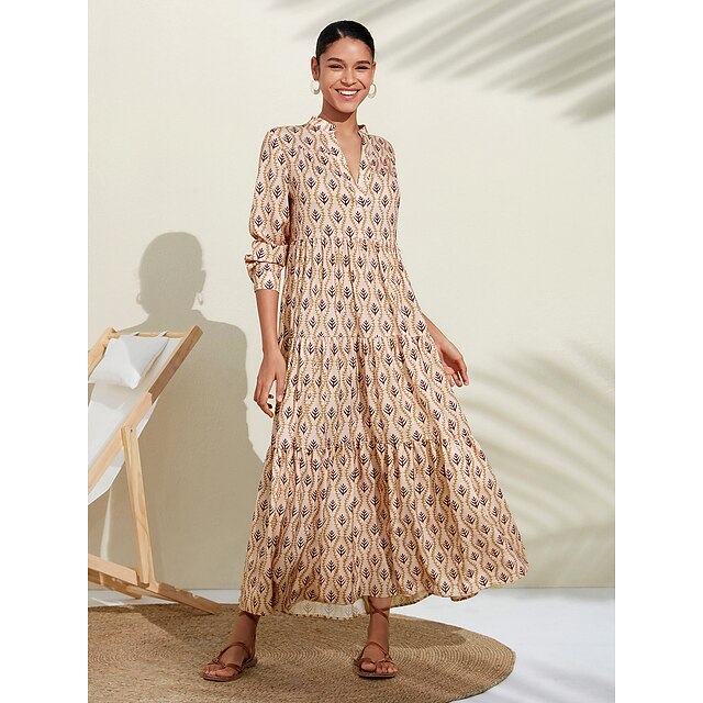 Women's Loose Pink Long Sleeve Floral Botanical Plants Pattern Plant Spring & Summer Spring and Summer V Neck Stand Collar Casual Daily Vacation S M L 1