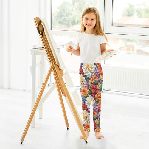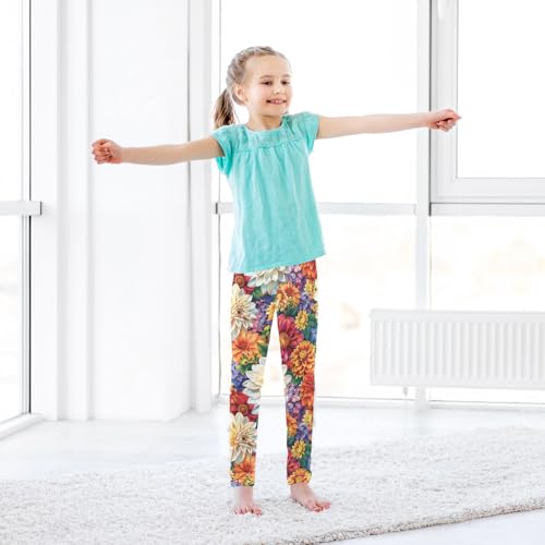 Multicolored Dahlia Flowers Girls Leggings Soft Stretch Workout Yoga Dance Pants for Kids Casual Tights 6