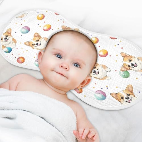 vvfelixl Baby Burp Cloths Cartoon Corgi Dog Play Balls Baby Newborn Cotton Burping Cloths Set Babys Washcloths 4 Pack 6