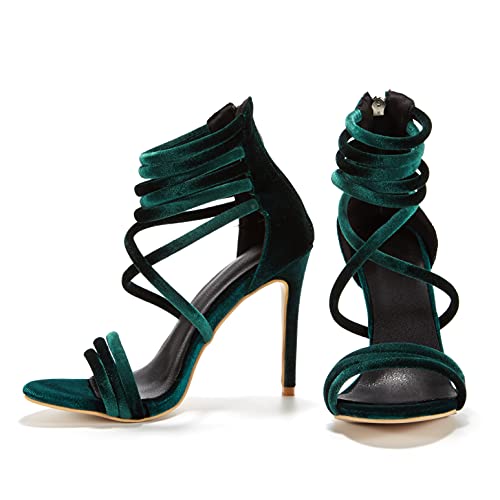 HOT ! Women Cross Strap Suede High Heel Shoes Open Toe Sexy Evening Sandals Strappy Stilettos with Back Zip Green