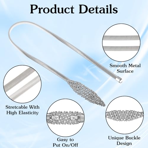 Ouligay Metal Skinny Waist Belt Elastic Thin Belt for Women Dresses Rhinestone Adjustable Stretchy Waist Chain Belt Silver 4