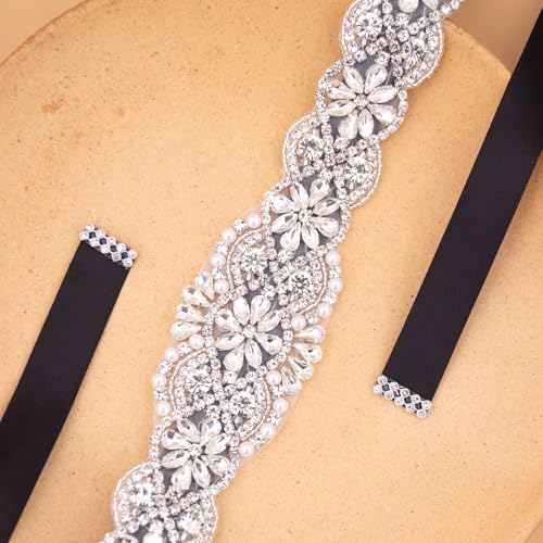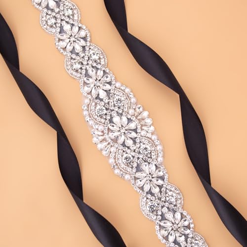 • The rhinestone wedding dress belt is hand-woven with high quality pearls、rhinestones and crystals. It can be paired with a dress to create a stunning point and add elegance and glamour to your look.