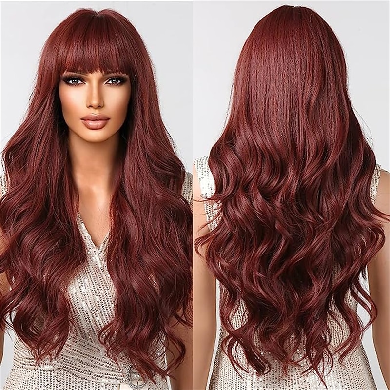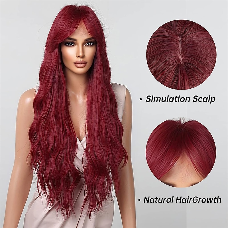 Red Wigs for Women Cosplay Long Natural Wavy Party Synthetic Hair Wig with Bangs 31