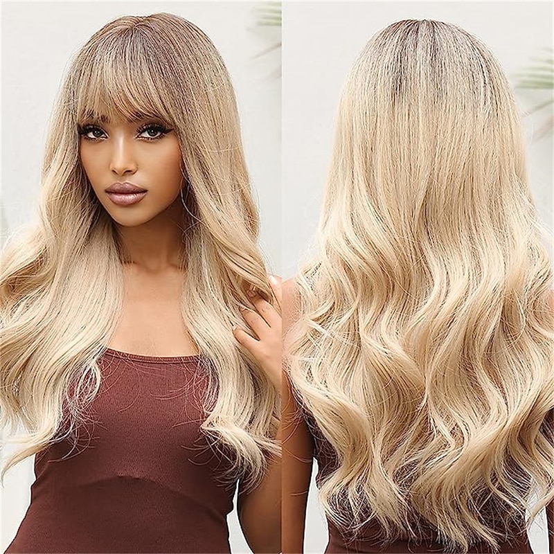Red Wigs for Women Cosplay Long Natural Wavy Party Synthetic Hair Wig with Bangs 24