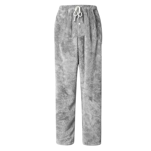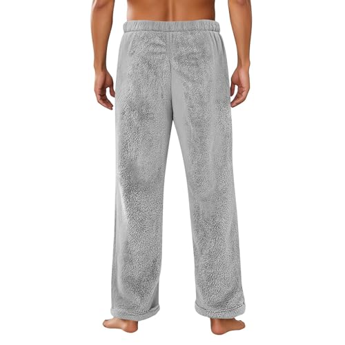 HOT ! Men's Plush Fleece Pants Winter Cozy Wide Leg Fleece Lounge Pajama Trousers Elastic Waist Baggy Fluffy Soft Warm Pant