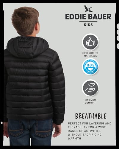 • OFFICIALLY LICENSED EDDIE BAUER: Waterproof Windbreaker Quilted Puffer Jacket Raincoat for Boys and Girls; Eddie Bauer combines its adventure-driven innovation with even more sustainability and inclusivity, using materials and methods that minimize impact, and building an outdoor culture open to everyone