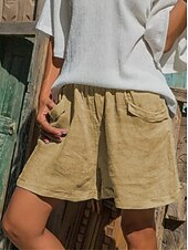 More information about Women's Normal Cotton Linen Shorts Linen-Inspired Pants Cotton Linen Pants Casual / Sporty Short Mid Waist Plain Pocket Elastic Waist Breathable Soft Inelastic Weekend White Yellow Gray Summer Spring