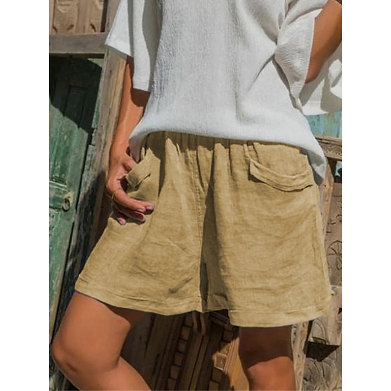 Women's Normal Cotton Linen Shorts Linen-Inspired Pants Cotton Linen Pants Casual / Sporty Short Mid Waist Plain Pocket Elastic Waist Breathable Soft Inelastic Weekend White Yellow Gray Summer Spring 6
