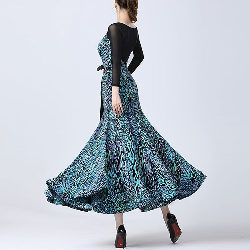 $205.59 - Ballroom Dance Dress Printing Splicing Women's Performance Party Long Sleeve Crystal Cotton Mesh 2025. Shop for cheap Competition Wear online? Buy at lightinthebox.com on sale today!