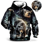 : Featuring a striking 3D graphic print of bears in their natural forest habitat, this hoodie showcases artistic detail that captures attention. The classic pullover style includes an adjustable drawstring hood and a spacious front pocket for added functionality and style.