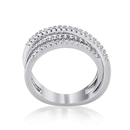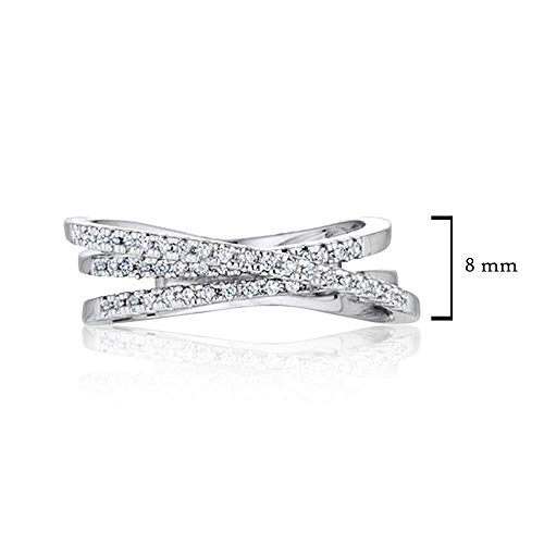 Samie Collection Intertwined Crossover Statement Anniversary Ring with 0.2ctw CZ in Silver Tone Rhodium Plating Fashion Jewelry 7