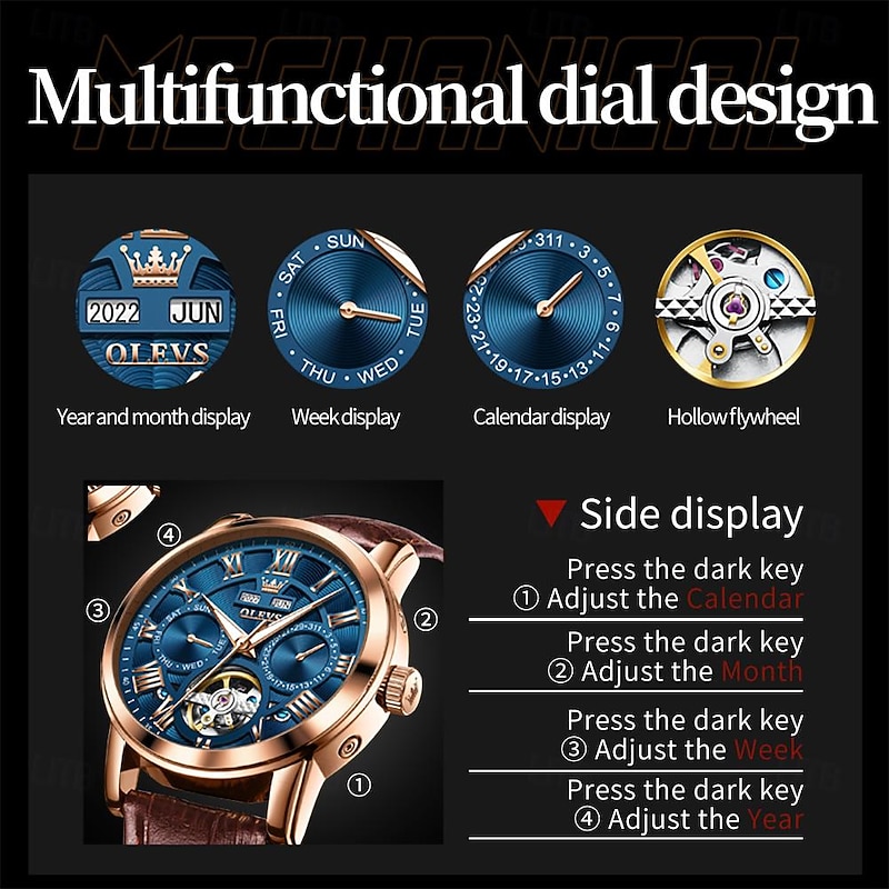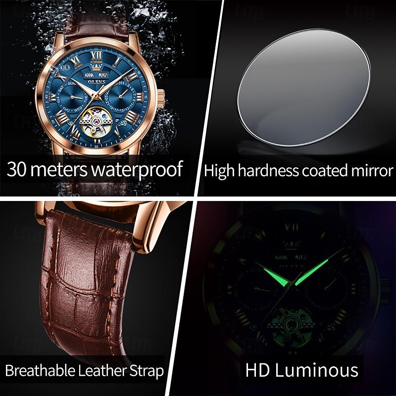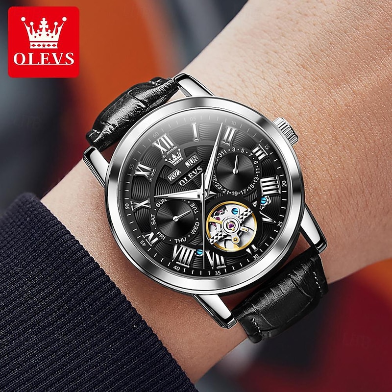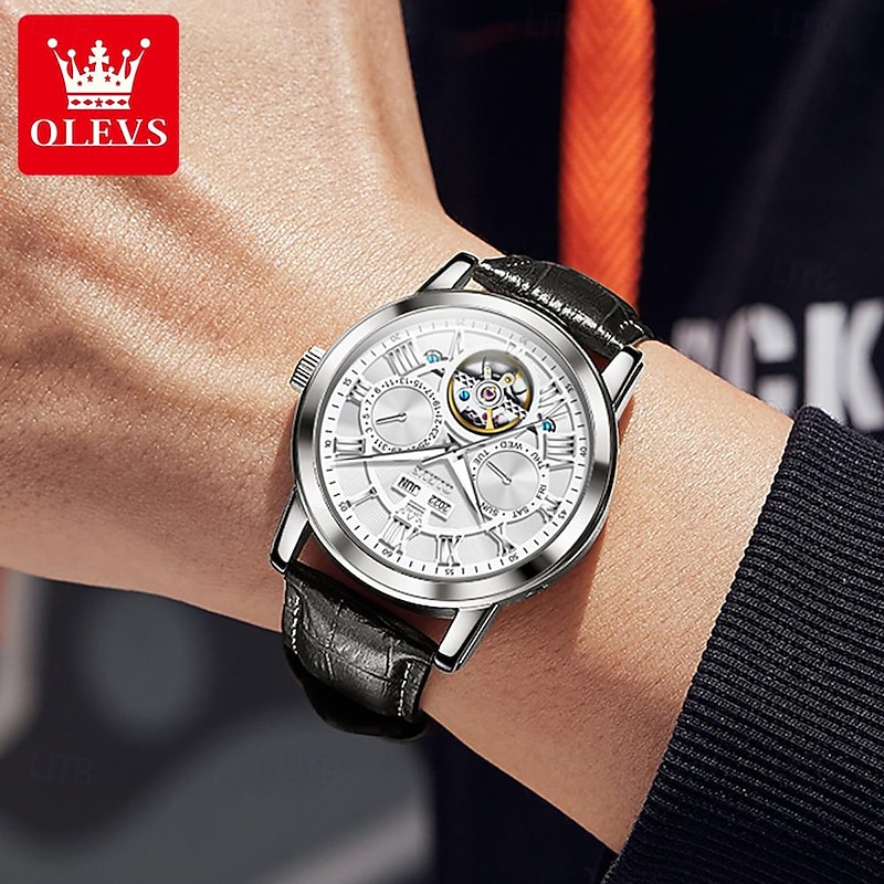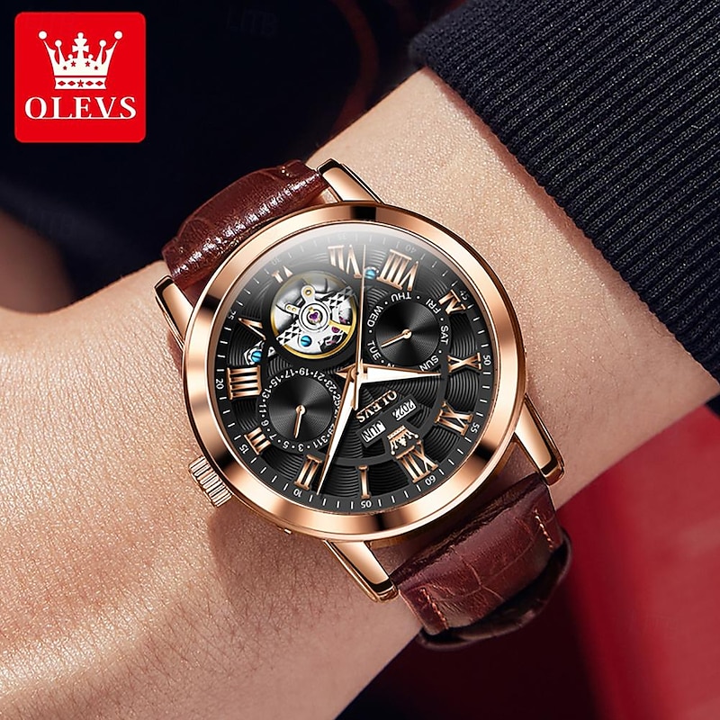 $68.99 - OLEVS Men Mechanical Watch Fashion Casual Wristwatch Automatic Self-winding Luminous Calendar Date Week Leather Watch 2025. Shop for cheap Mechanical Watches online? Buy at lightinthebox.com on sale today!