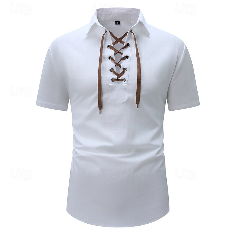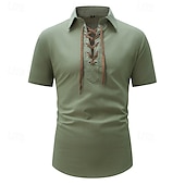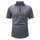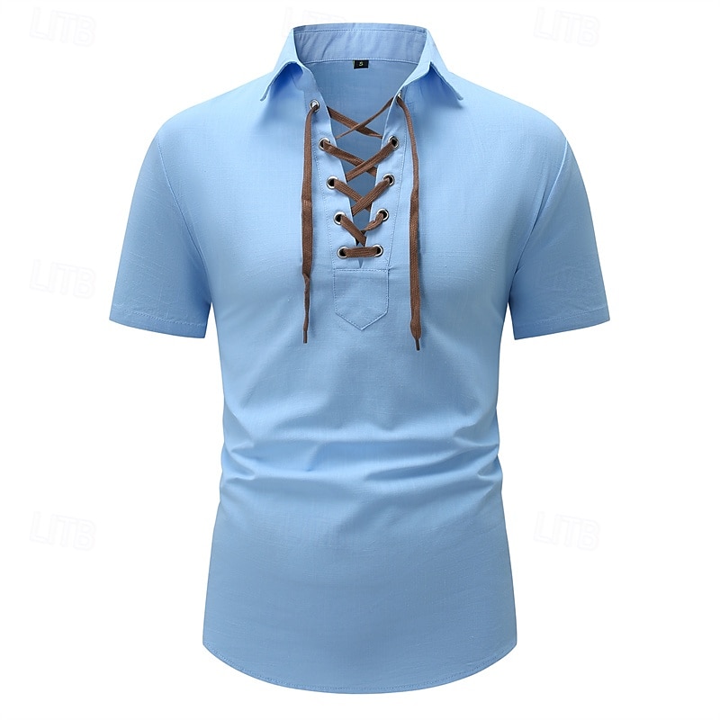 More information about Men's Shirt Linen Shirt Viking Style Summer Shirt Beach Wear Pirate Shirt Solid Color Outdoor Vacation White Sky Blue Green Dark Gray Short Sleeve Shirt Collar Summer Spring Clothing Apparel