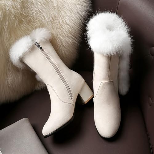 GUNIYIFS Womens Winter Snow Boots Faux Suede Fur Lined Warm Boots Mid-Calf Boots Comfortable High Heels Dress Party Boots 6