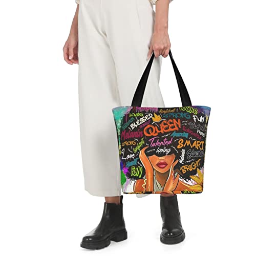 HOT ! African American Woman Tote Bag Black Girl Shoulder Bag Afro Handbag Beach Bag for Adults Students Office Travel