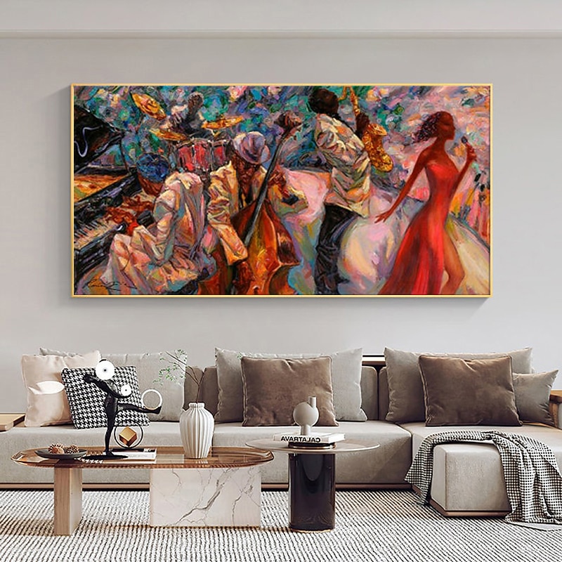 Handmade Oil Painting Canvas Wall Art Decoration Vintage Figure Drawing Concert for Home Decor Rolled Frameless Unstretched Painting 1