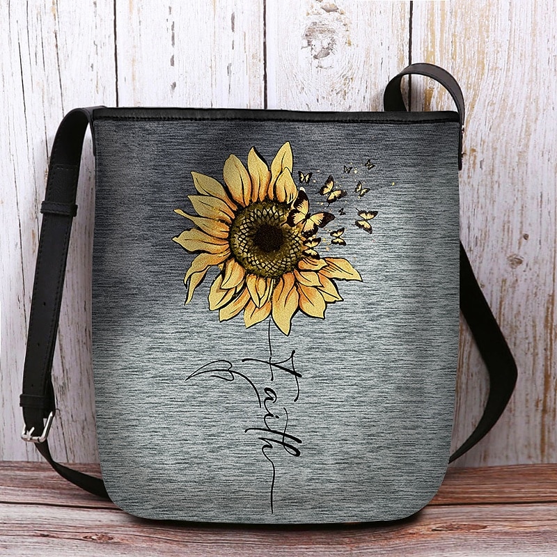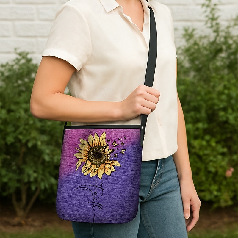 MXN $402 - Women's Sunflower Print Crossbody Bag - Large Capacity Waterproof Fabric Shoulder Bag with Adjustable Shoulder Strap, Inspired "Faith" Design, Suitable for Leisure, Travel and Daily Use 2025. Shop for cheap Crossbody Bags online? Buy at lightinthebox.com on sale today!