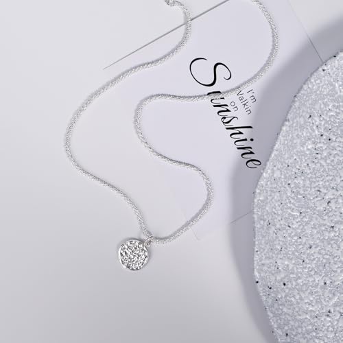 925 Sterling Silver Necklace with Disc Hammered Moon Silver Round Pendant Necklace for Women Trendy 5