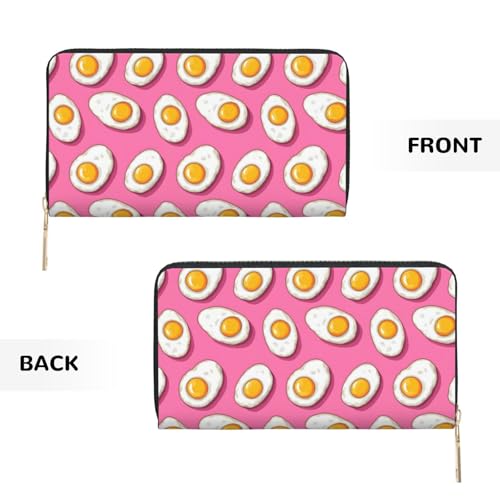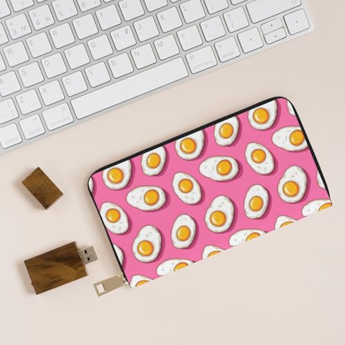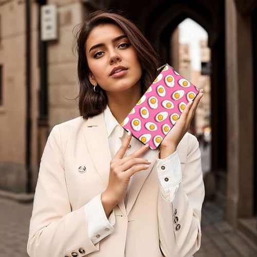 HOT ! Leather Thin Slim Wallets for Women & Men - Bright Fried Egg Pink Print Card Wallet Holder with Zipper
