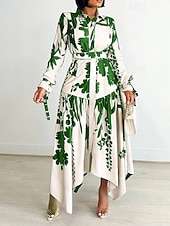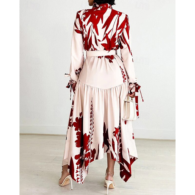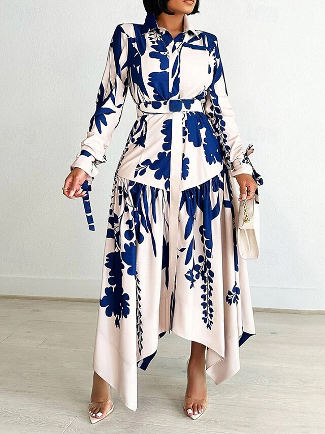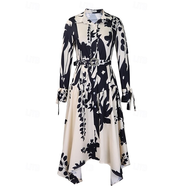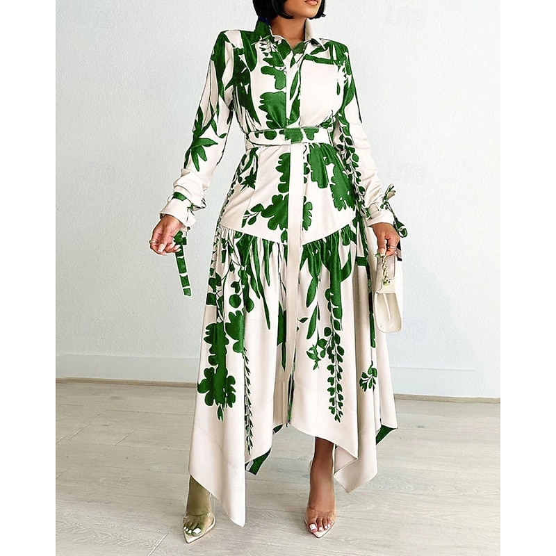 More information about Women's Midi Dress Shirt Dress Floral Dress Print Dress Modern Outdoor Daily Going out Regular Fit Floral Long Sleeve Shirt Collar Black Wine Green Dark Blue Spring Fall