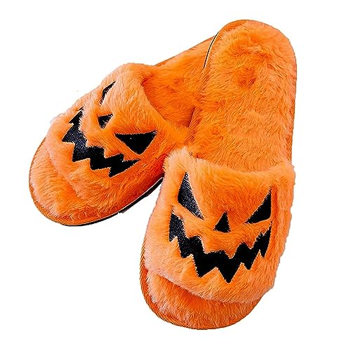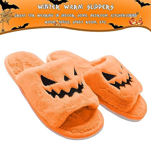HOT ! Knemksplanet Halloween Pumpkin Slippers Women Men Jack O Lantern Fuzzy Spooky Slides Soft Plush Cozy Slippers Indoor Outdoor