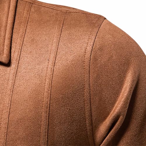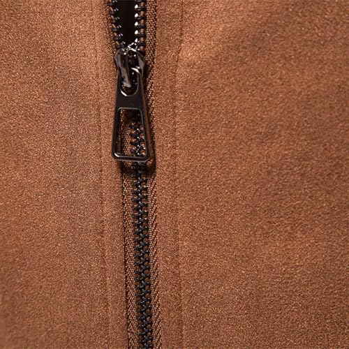 Men's Suede Jacket Spring Fall Full Zip Up Jackets Vintage Faux Leather Coat Outwear with Zipper Pockets for Business 7