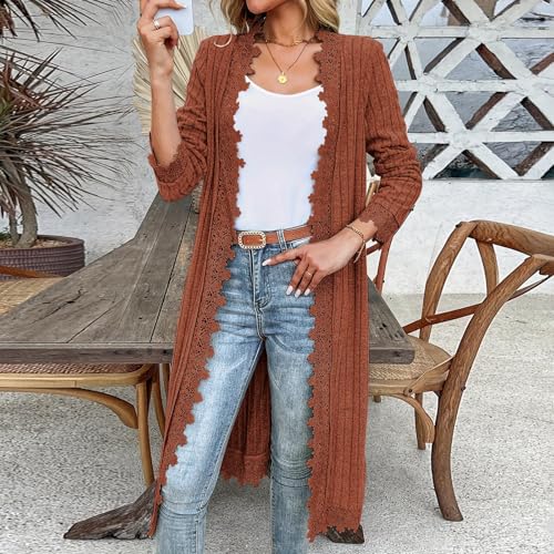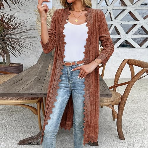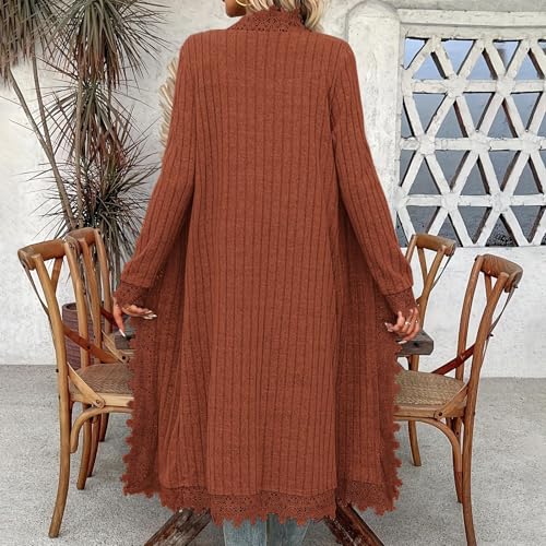 Women Ribbed Knit Maxi Sweater Cardigan, Long Sleeve Open Front Lace Trim Casual Tops Loose Comfy Fall Trendy Cardigans 7