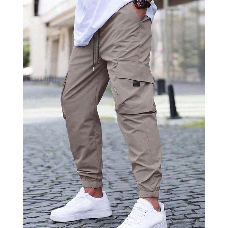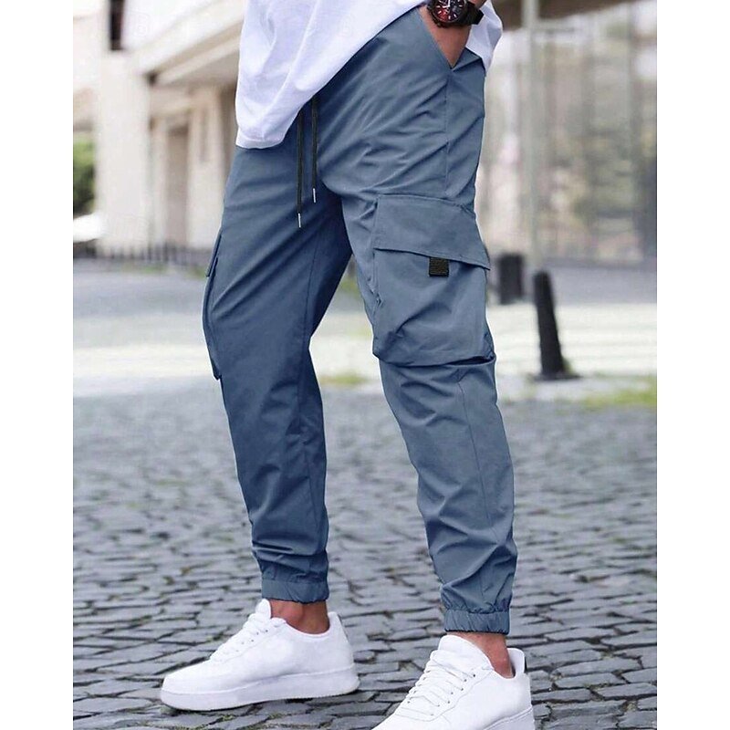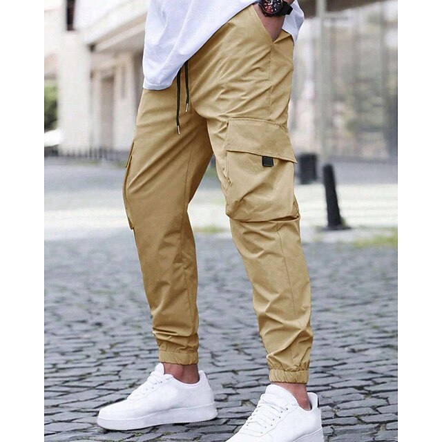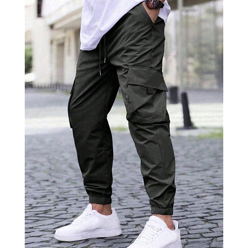 More information about Men's Cargo Pants Trousers Elastic Waist Multi Pocket Plain Quick Dry Wearable Full Length Daily Casual Black Light Green